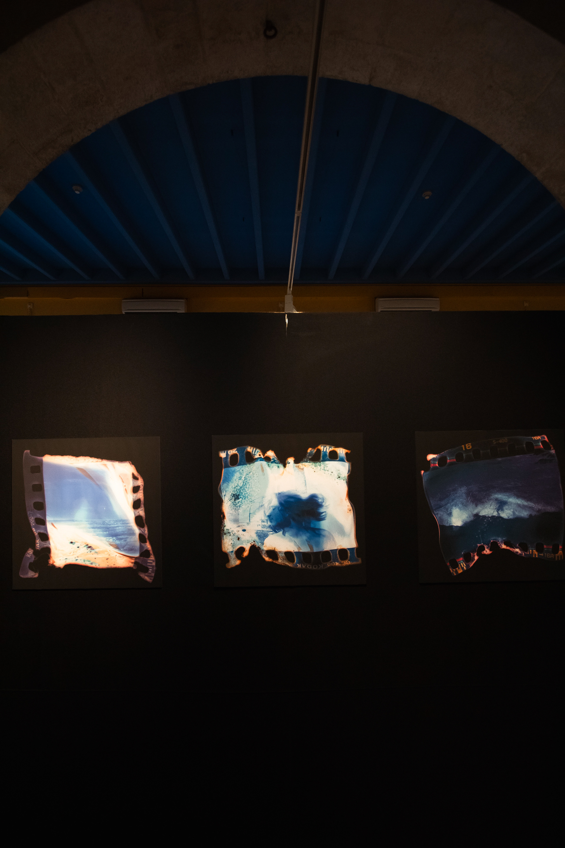 "Elements" is a project that seeks to study the profound interconnectedness of everything, exploring and documenting the transformation that occurs when elements interact with photographic negatives. By intervening with water, fire, air, and earth, the project aims to uncover hidden stories and the visual poetry embedded in nature. It delves into the unpredictability and causality of analog photographic processes, allowing the elements to leave their distinctive mark on the film, thus capturing the very essence of these elemental forces. Each of these images is a visual testament to the duality of fire (destruction and creation, passion and calm, light and darkness…) and a manifestation of the latent transmutational power of film, which, when exposed to this element, results in unexpected colors, shapes, and textures. This exhibition is an acknowledgment of strength and fragility, an invitation to reflect on the ephemeral nature of our existence and the constant transformation that defines our reality.